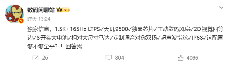 打得炎热旗舰机,子品牌也没闲着主打性价比的。周的音书据站哥上yaxin333.net9500职能旗舰某厂的子系天玑,4月见暂定,没点名固然,里都猜但圈,I K90至尊版梗概率是REDM。