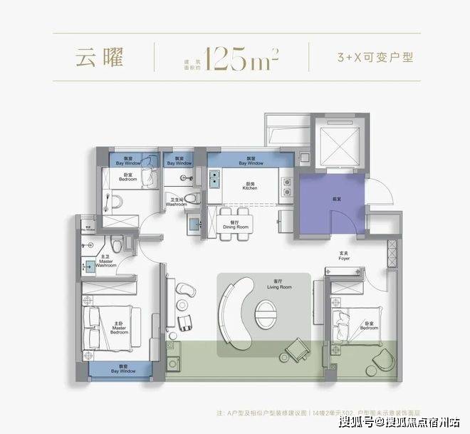 四开间朝南三阳台户型举动松江板块罕见的,寝室朝南三开间,台与飘窗搭配多阳,感无可相比采光与通透;户打算一梯一,梯厅的爱护体验同样付与独享。