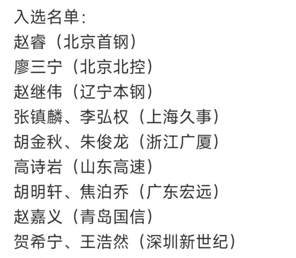 人名单里这份14,了整整6个后卫球员占。三宁、高诗岩、胡明轩和贺希宁他们分手是赵继伟、赵睿、廖。名球员锋线,朱俊龙、赵嘉义和王浩然征求张镇麟、李弘权、。个别内线,泊乔和余嘉豪胡金秋、焦。