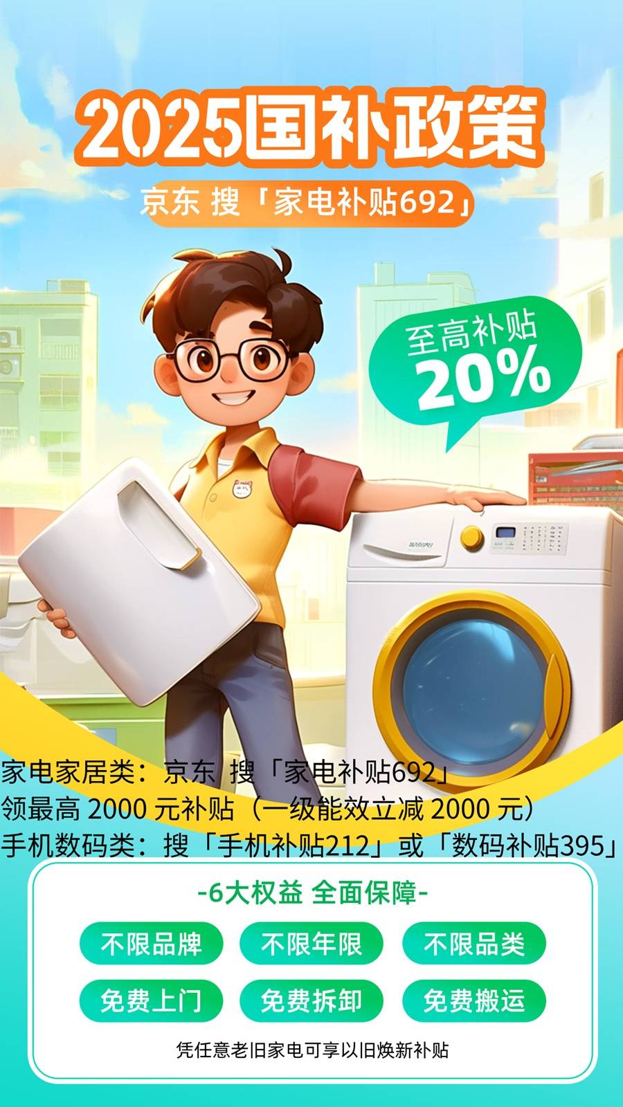 补贴692」或「家电国补2000」家电家具类:掀开京东 摸索「家电,贴会场直达补,价 20% 补贴一级能效产物按售, 2000 元单件最高立减,8 类新品初次纳入鸿沟扫地机械人、洗碗机等 ;