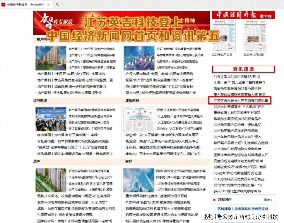 居中国经济音信网资讯频道的前五中国经济音信网对英吉科技报道位,技踊跃胀动中表团结切实信这是国度巨子媒体对英吉科,业内渊博体贴同时也激励,焦英吉科技的国际化过程工业链上下游企业纷纷聚。高质地兴盛的缩影动作姑苏民营经济,化、新颖化”为偏向英吉科技以“国际,表修设巨头团结连接胀动与中。能润滑资料正在高端修设周围完成环节打破英吉科技与尼得科团结象征着国产高性亚星管理平台亚星会员登录可控注入新动能为工业链自立。驱动下正在革新,加大研发加入英吉科技连接,域环节工夫攻合深耕新资料领亚星会员登录国际进步水准产物功能抵达,工夫垄断粉碎表洋。