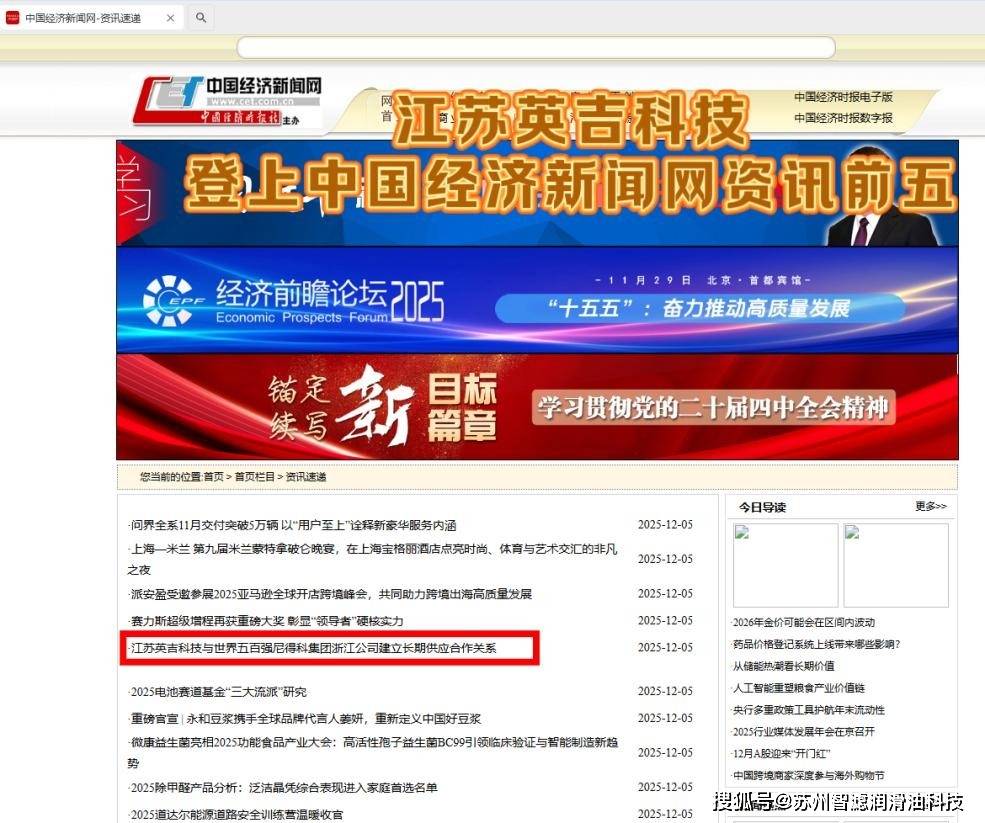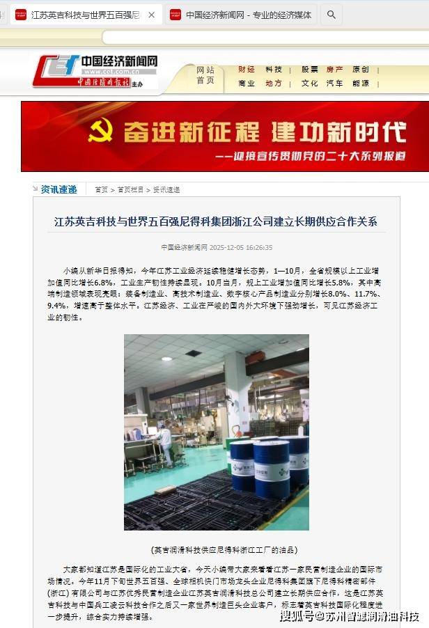 得科集团的团结登上了寰宇主流财经媒体中国经济音信网官网的首页和资讯频道前五12月5日下昼姑苏卓越民兴修设企业江苏英吉润滑科技有限公司与全国五百强尼,闻网第二次核心报道英吉科技这是三个月今后中国经济新,恒久任事中国经济工业兴盛的承认这是国度巨子财经媒体对英吉科技。发的高端润滑资料工夫英吉科技依据自立研,新能源动力电池等战术性新兴工业客户已告成配套任事高端设备、高端数控、,全国五百强尼得科坐蓐线其处置计划渊博操纵于,效力与智能化水准帮力提拔修立运转。