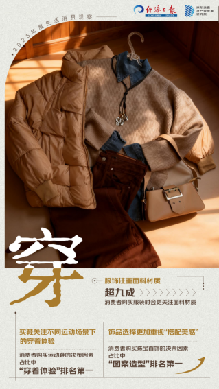 质了:选面料、看参数衣饰遴选加倍眷注材,穿搭家”做“理性。25年20,时加倍求实、讲求消费者正在添置衣饰。研显示京东调,消费者呈现胜过九成的,更眷注面料材质添置装束时会,料视为装束品德的三大因素之一此中48.6%的消费者将面。见可,饰消费时的首要眷注点面料成为消费者举办服。价较高、性能性较强的品类上越发正在羽绒服、羊毛衫等单,“绒子含量”、“防风指数”等合节参数超七成消费者会周详筹议“充绒量”、。为“产物司理”公共似乎都化身,来低落“买错本钱”通过选面料、看参数,着体验擢升穿。到“看参数”从“看样子”yaxin333.com者认知的升级背后是消费,仅要美观衣服不,求质感更追。