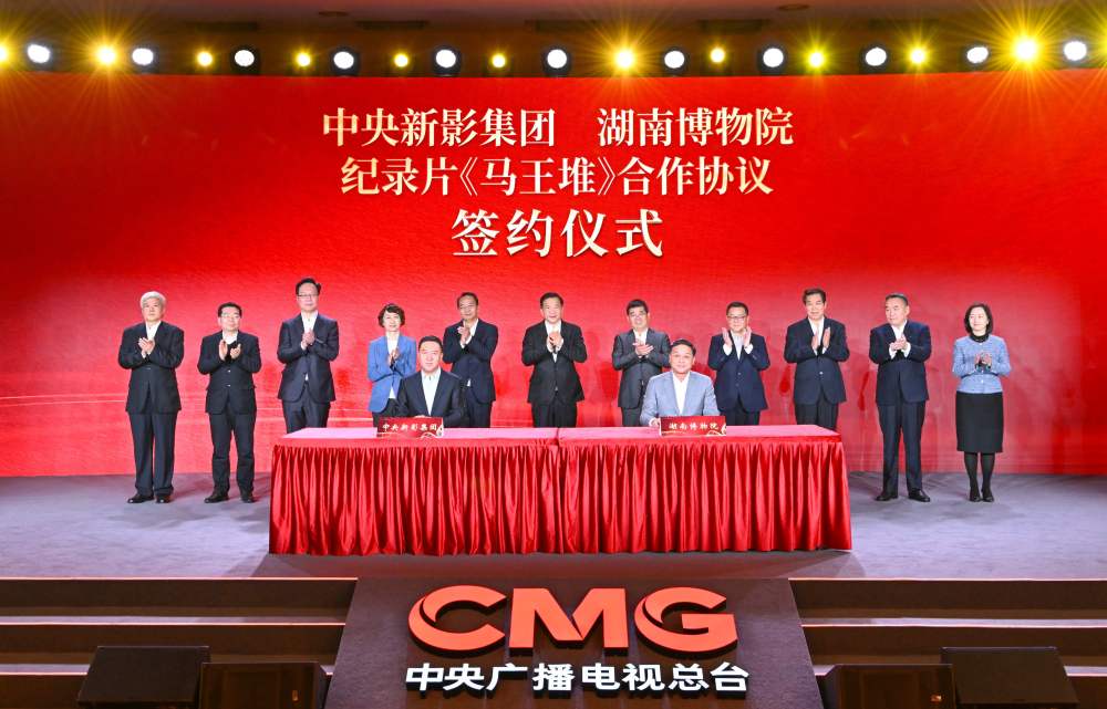 南博物院院长段晓明代表两边缔结记载片《马王堆》配合协△核心消息记载片子造片厂(集团)副总司理朱勤效与湖议